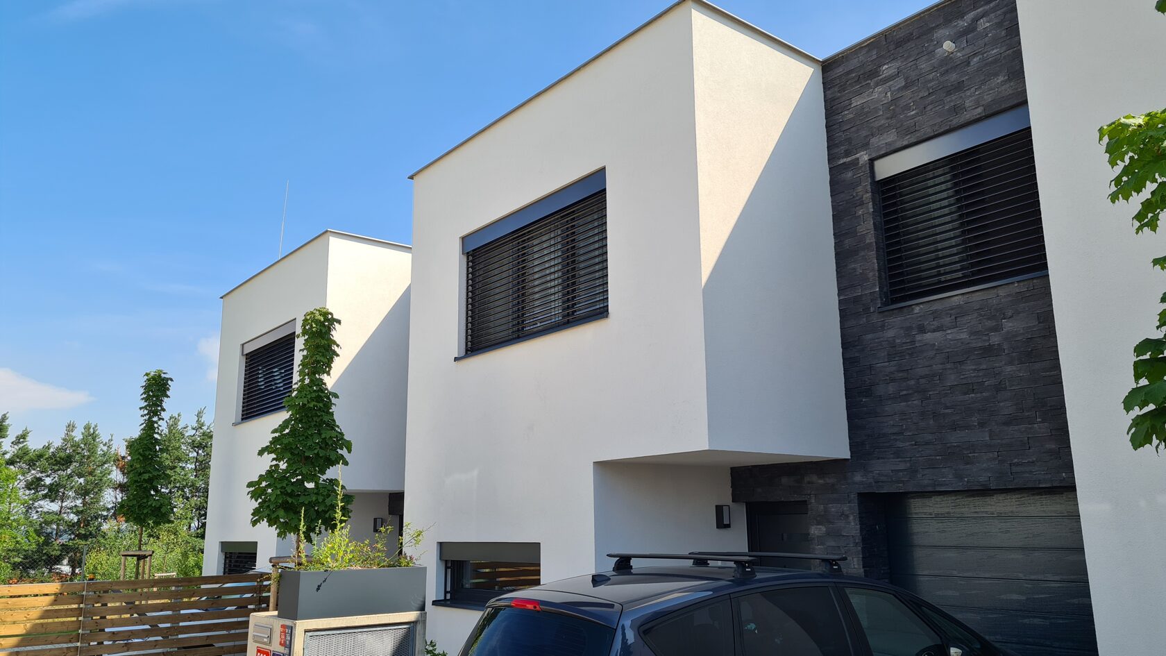 Realizace zahrnovala dodávku a montáž exteriérového stínění Z90, které zajišťuje ideální regulaci světla i teploty v interiéru. Součástí projektu bylo také inteligentní ovládání TAHOMA SOMFY, díky kterému lze žaluzie ovládat pohodlně z mobilu nebo automaticky podle denní doby. Celý systém zvyšuje komfort bydlení, šetří energii a dodává domu moderní, elegantní vzhled.